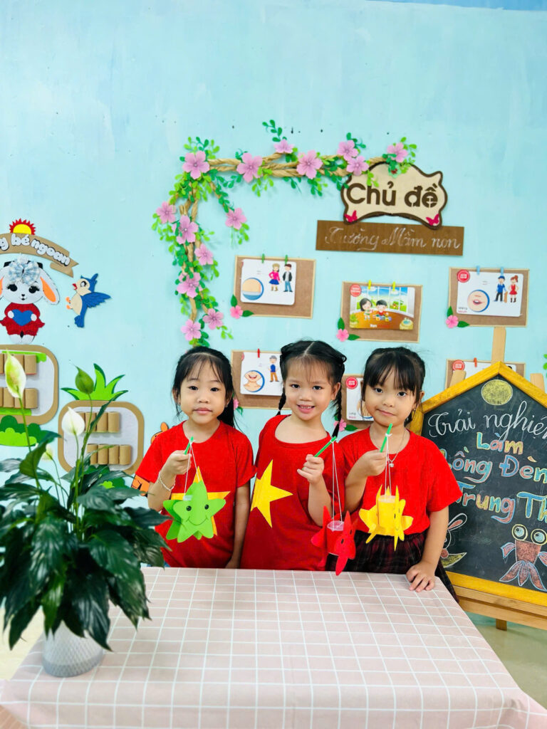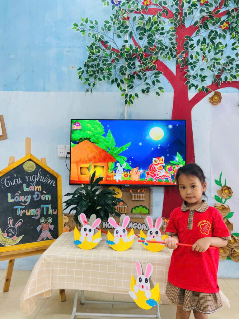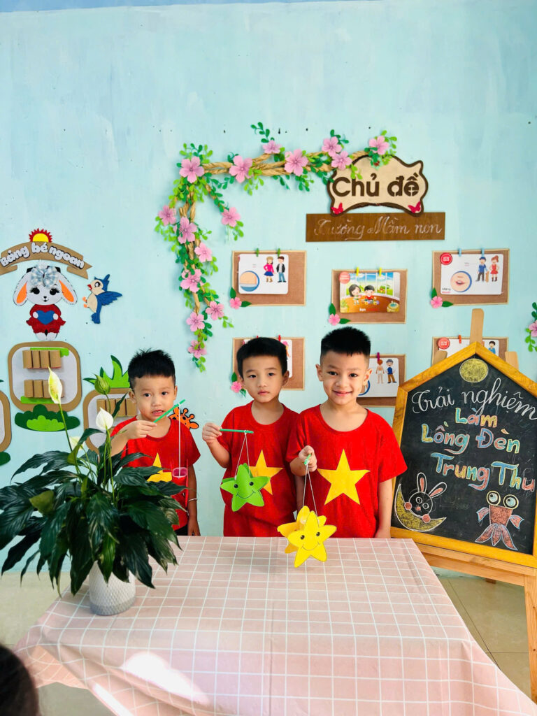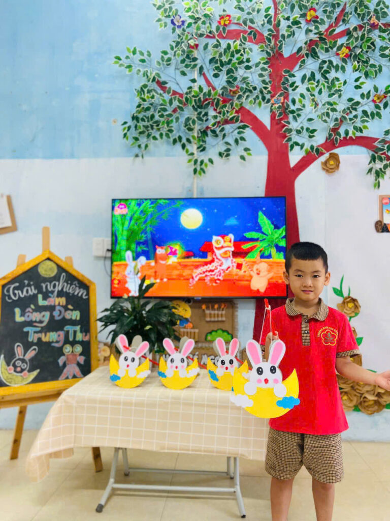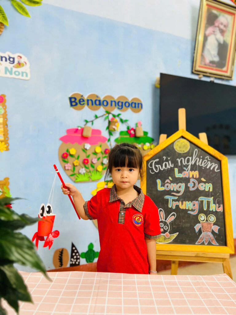Những nụ cười đáng yêu của các bạn nhỏ khi được cầm trên tay chiếc đèn lồng mà mình làm được, thật thích thú khi chiều về các bạn cầm đèn nháp nháy ra khoe với ba mẹ của mình.