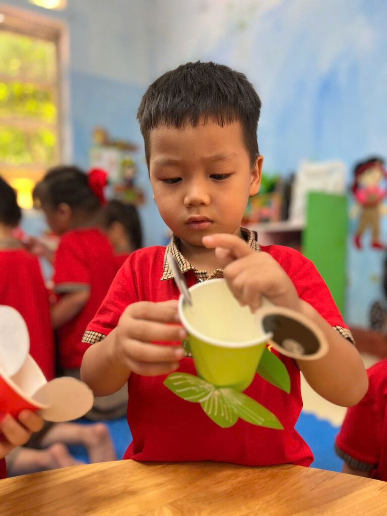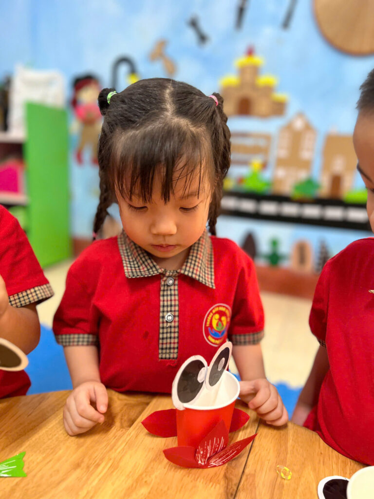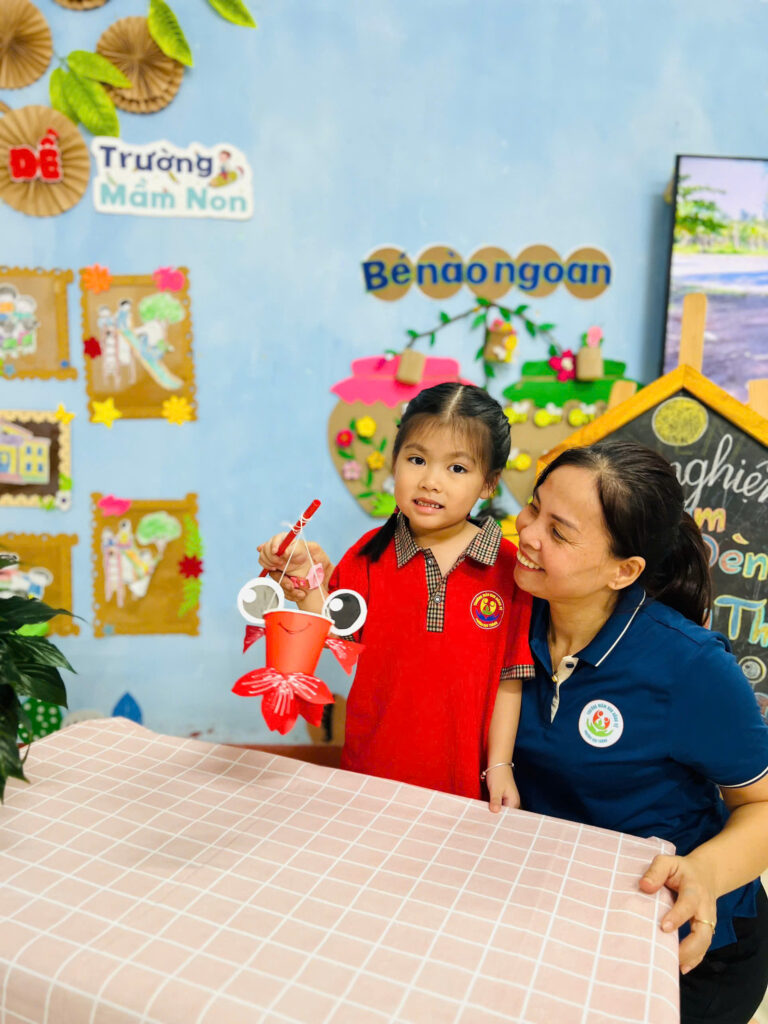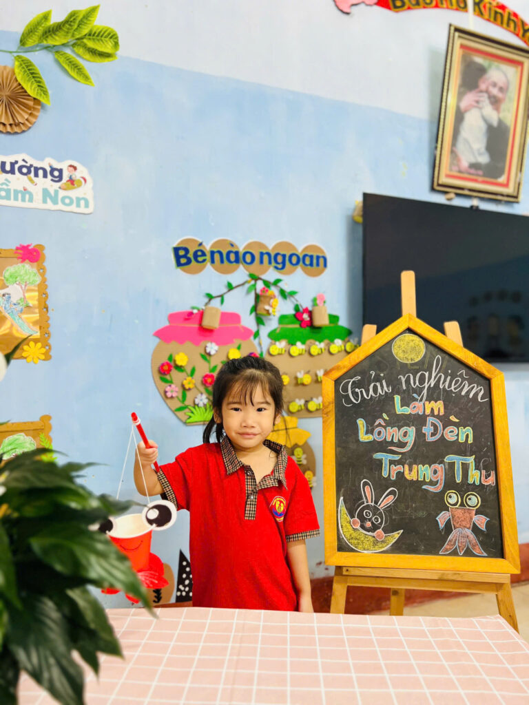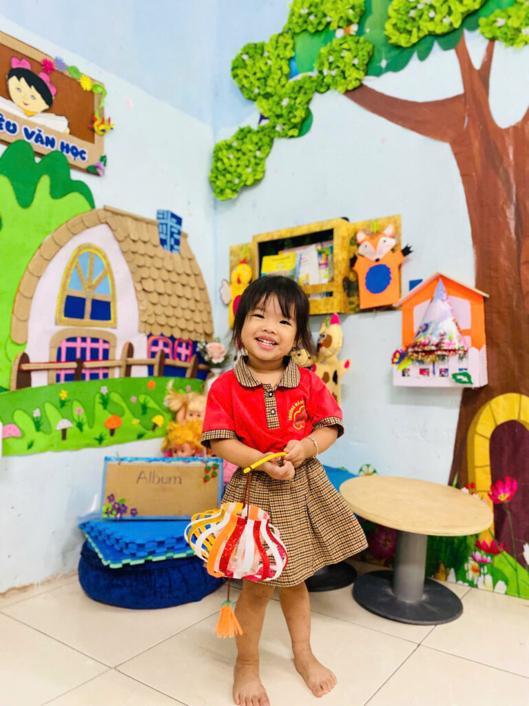 Những nụ cười đáng yêu của các bạn nhỏ khi được cầm trên tay chiếc đèn lồng mà mình làm được, thật thích thú khi chiều về các bạn cầm đèn nháp nháy ra khoe với ba mẹ của mình.