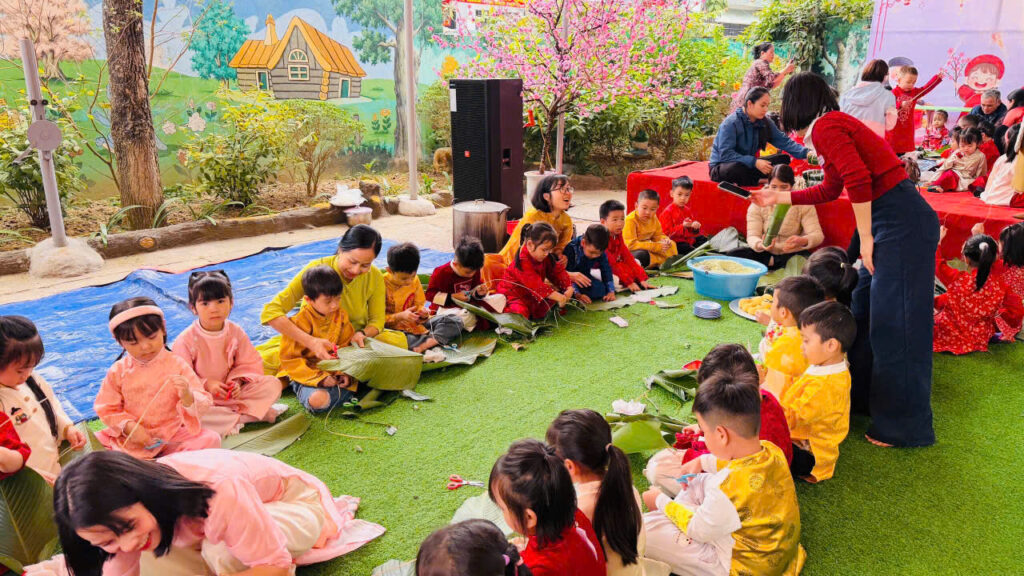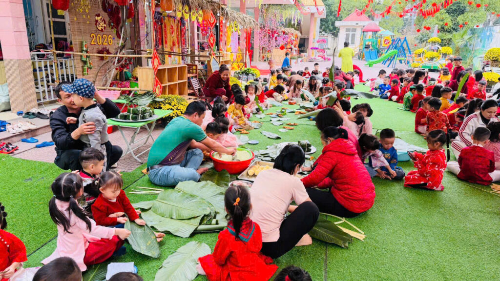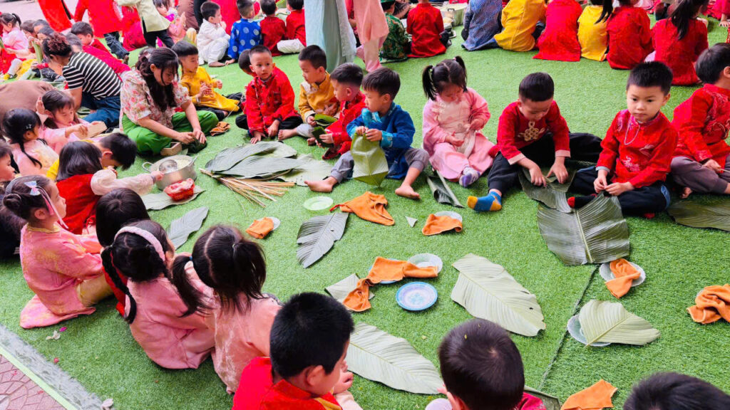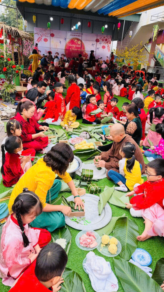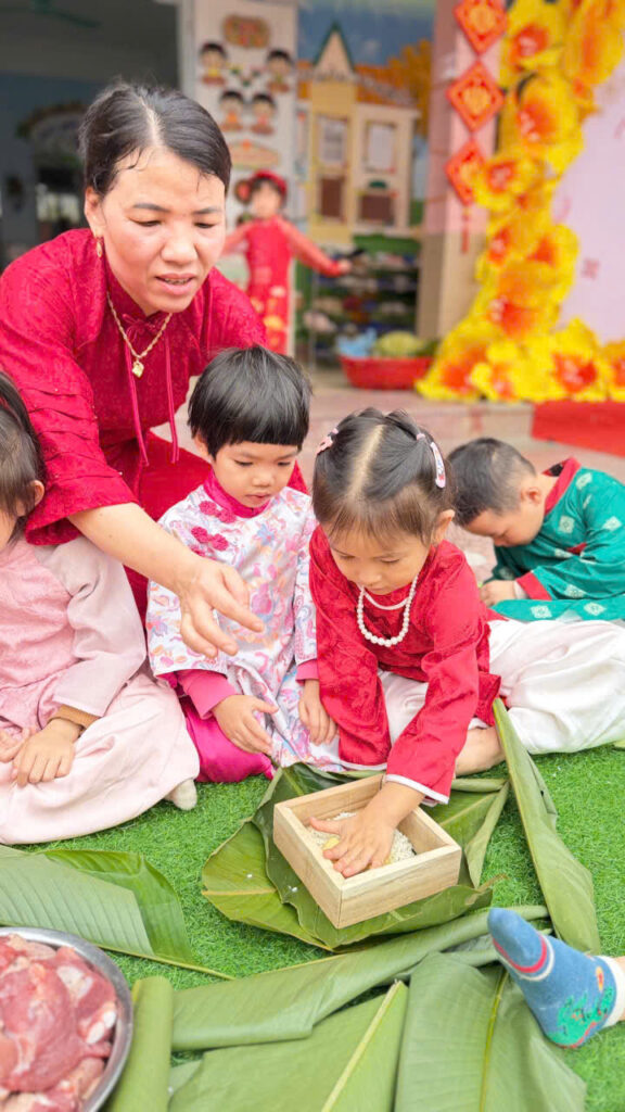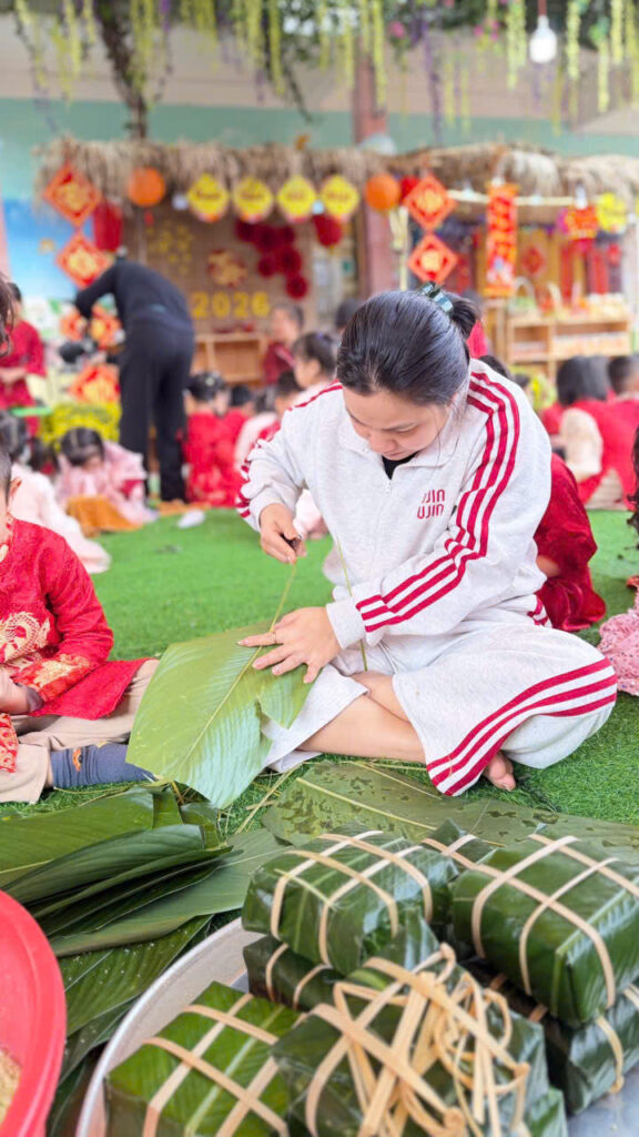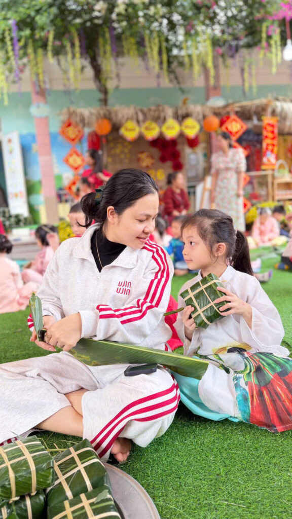 Hoạt động gói bánh chưng không chỉ giúp các con hiểu thêm về phong tục ngày Tết mà còn rèn luyện kỹ năng khéo léo, tính kiên nhẫn và tinh thần làm việc nhóm. Quan trọng hơn, các con được cảm nhận không khí Tết truyền thống một cách chân thực nhất.