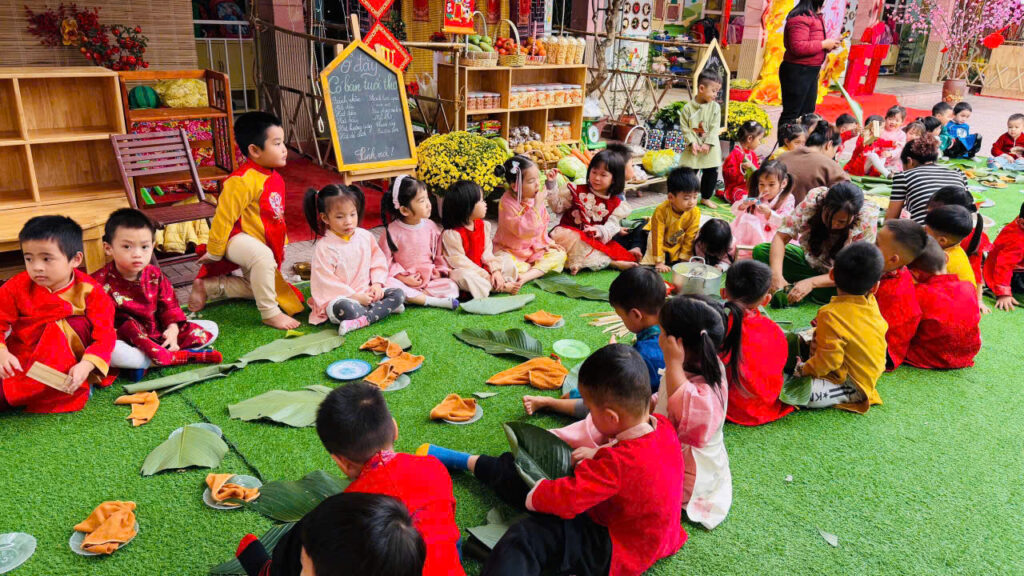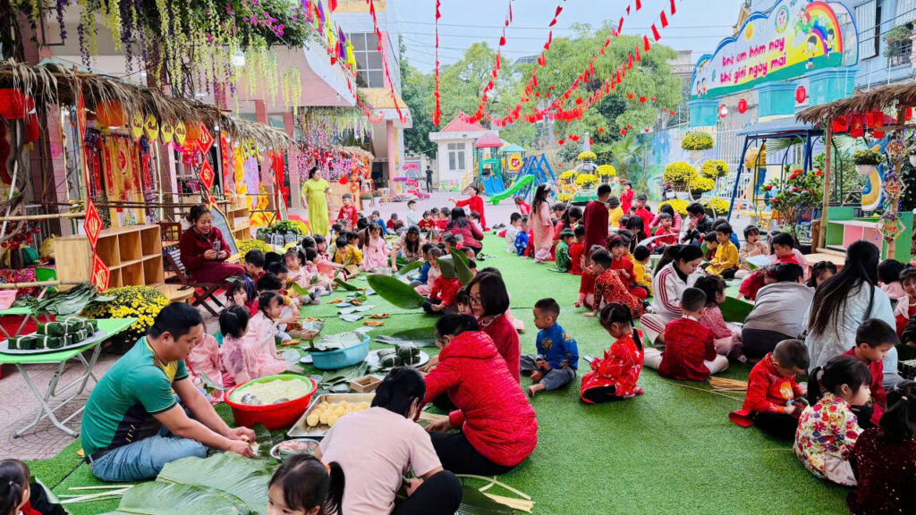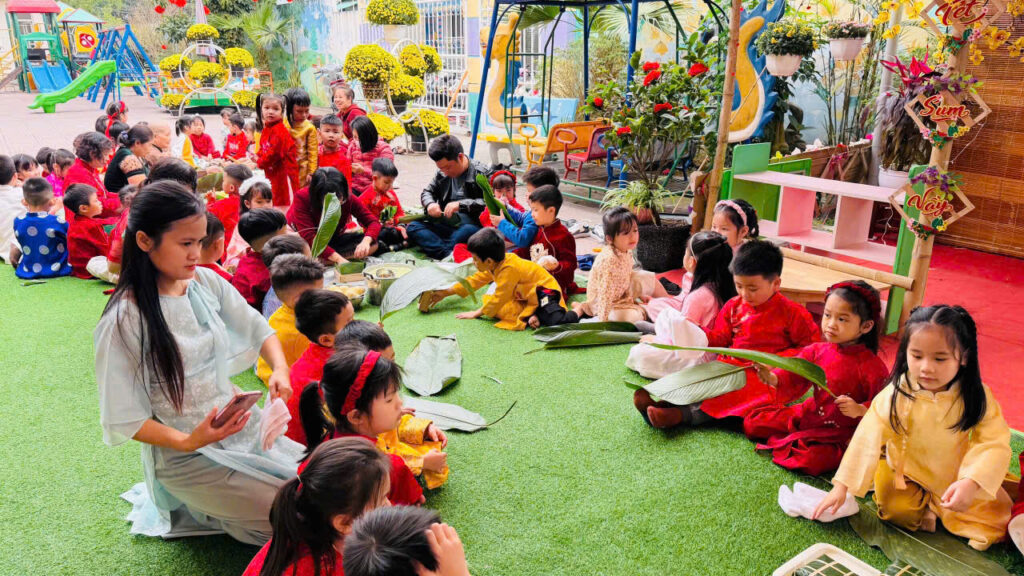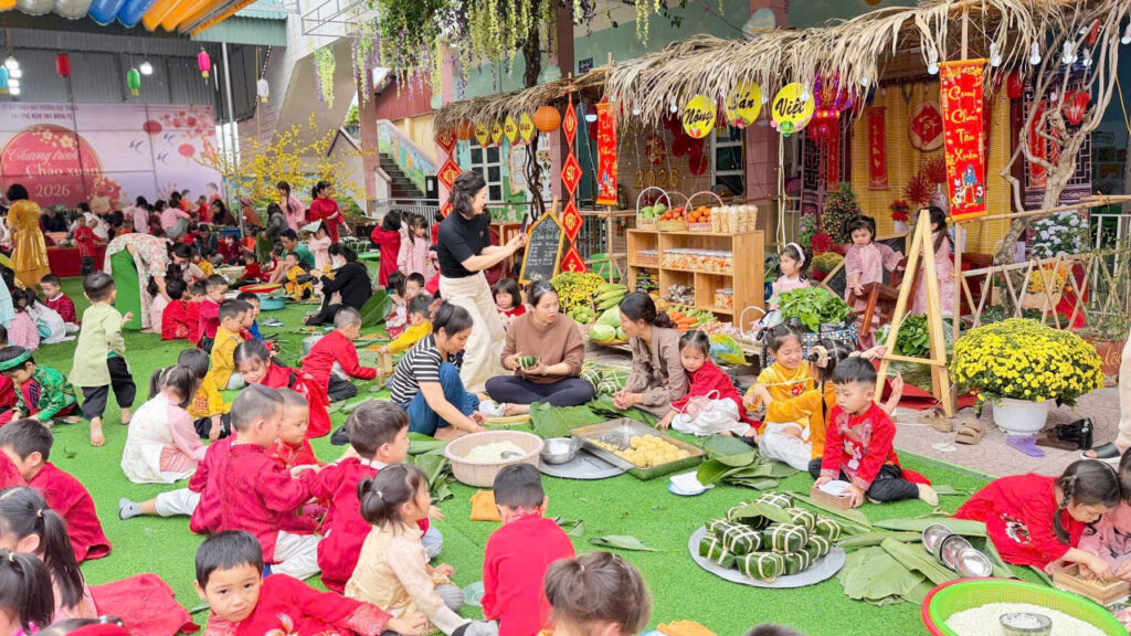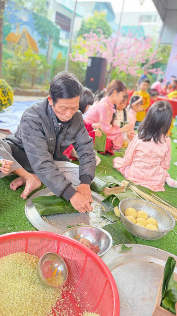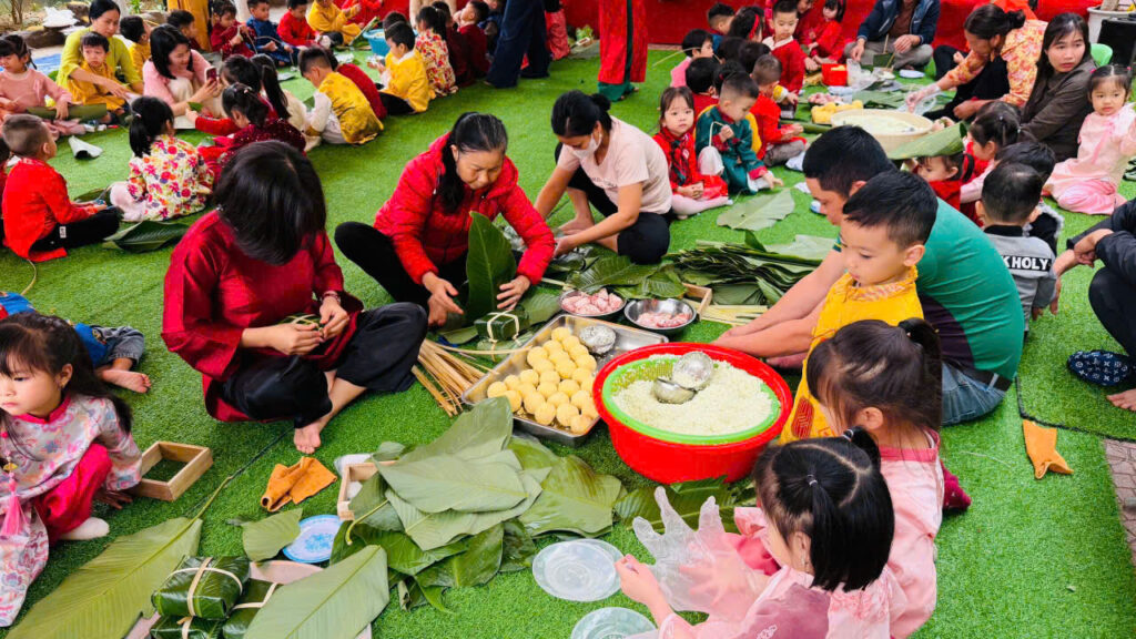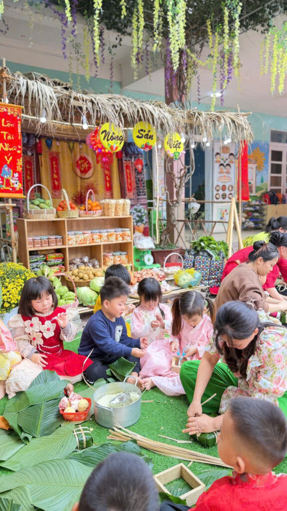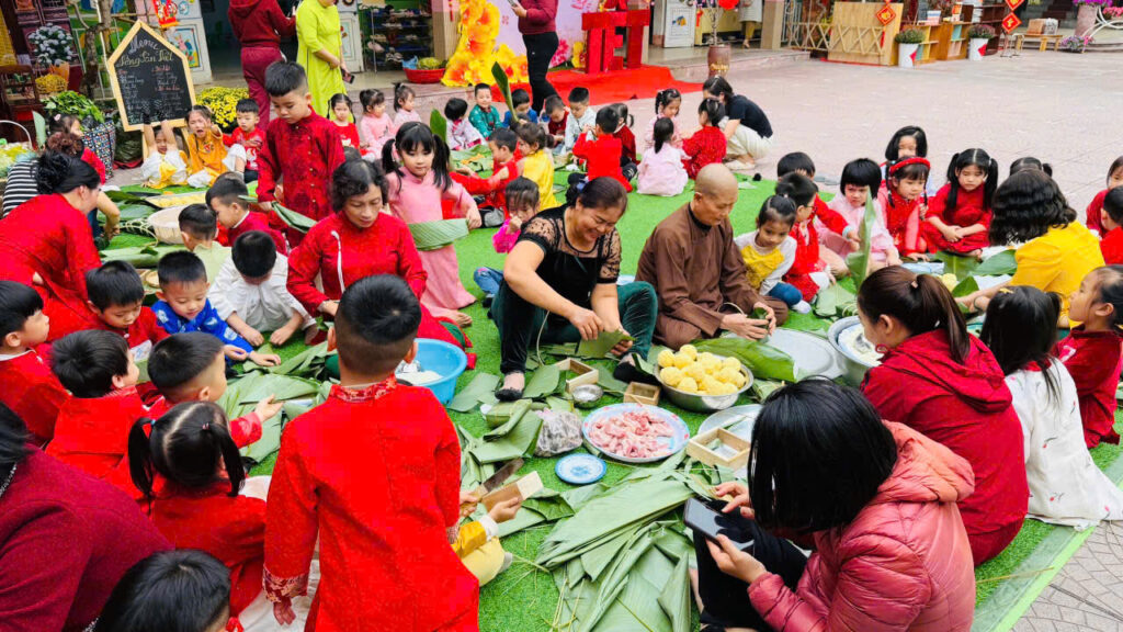 Hoạt động gói bánh chưng không chỉ giúp các con hiểu thêm về phong tục ngày Tết mà còn rèn luyện kỹ năng khéo léo, tính kiên nhẫn và tinh thần làm việc nhóm. Quan trọng hơn, các con được cảm nhận không khí Tết truyền thống một cách chân thực nhất.