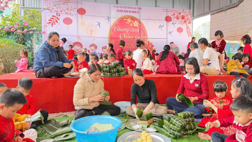 Trong không khí rộn ràng chào đón Xuân Bính Ngọ 2026, Trường Mầm non Đông Vệ đã tổ chức hoạt động trải nghiệm “Gói bánh chưng ngày Tết”, mang đến cho các em nhỏ một ngày hội đậm đà bản sắc truyền thống và tràn ngập tiếng cười.
