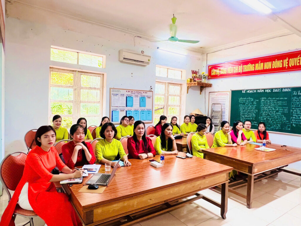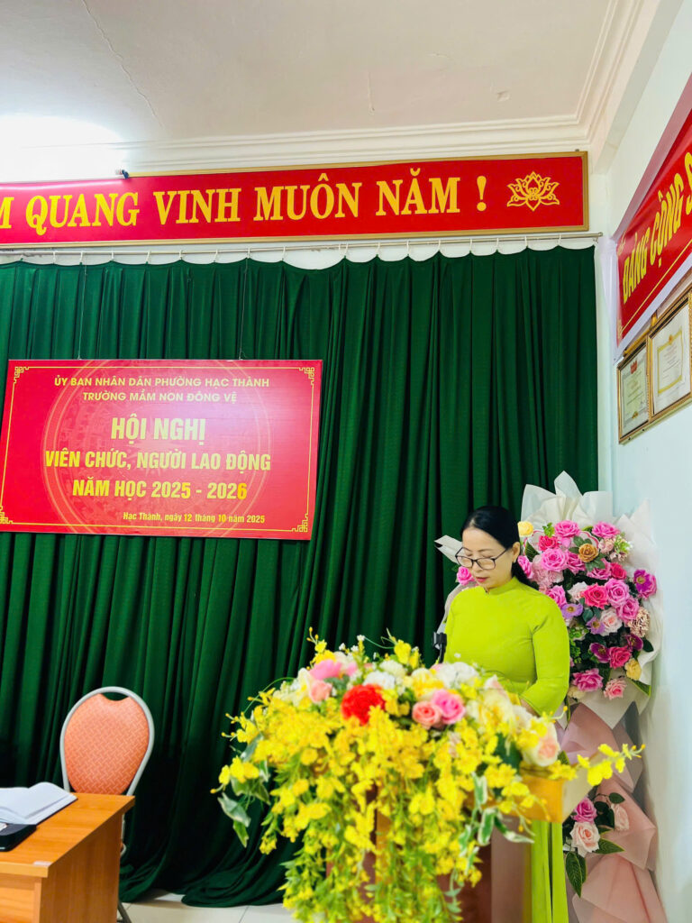 Với tinh thần dân chủ, đoàn kết, và quyết tâm cao, 100% cán bộ, giáo viên, nhân viên đã nhất trí với Nghị quyết Hội nghị.Tập thể sư phạm Trường mầm non Đông Vệ tin tưởng rằng, năm học 2025 – 2026 sẽ tiếp tục gặt hái được nhiều thành công, góp phần xây dựng nhà trường ngày càng phát triển bền vững và vươn xa hơn nữa.