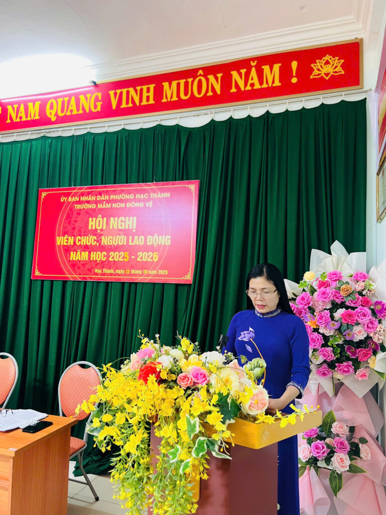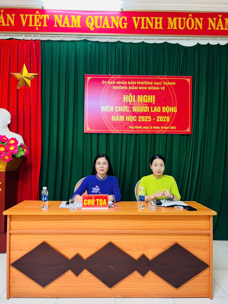 Chiều ngày 12/10/2025 vừa qua, Trường mầm non Đông Vệ đã long trọng tổ chức Hội nghị Cán bộ – Viên chức – Người lao động năm học 2025 – 2026 với sự tham gia đầy đủ của các đồng chí cán bộ, giáo viên, nhân viên nhà trường.