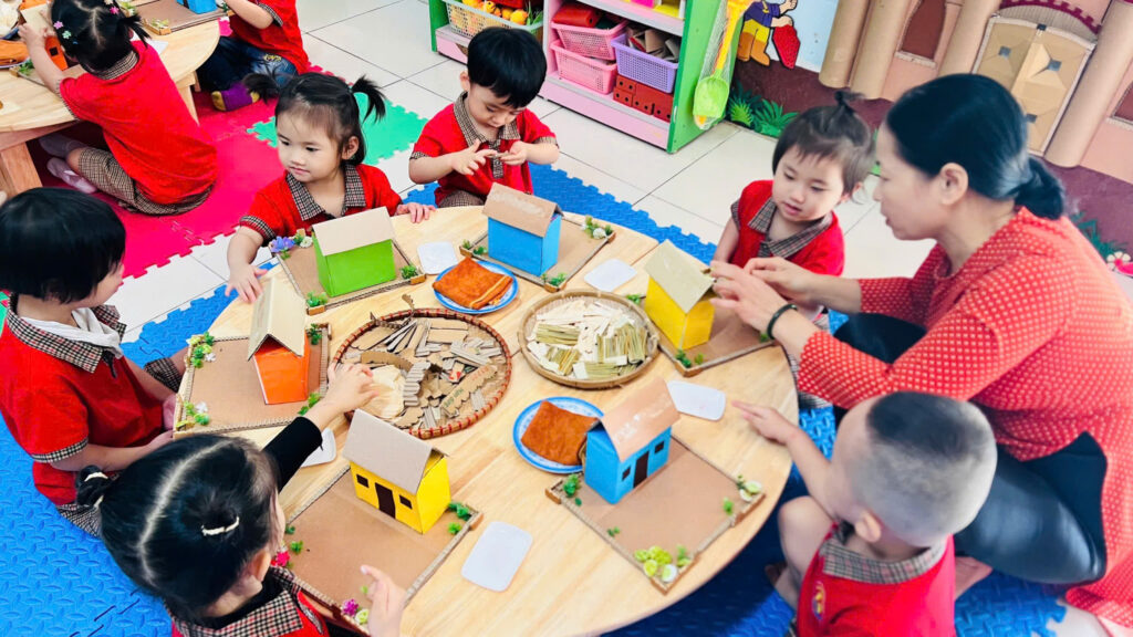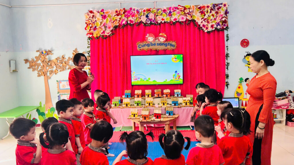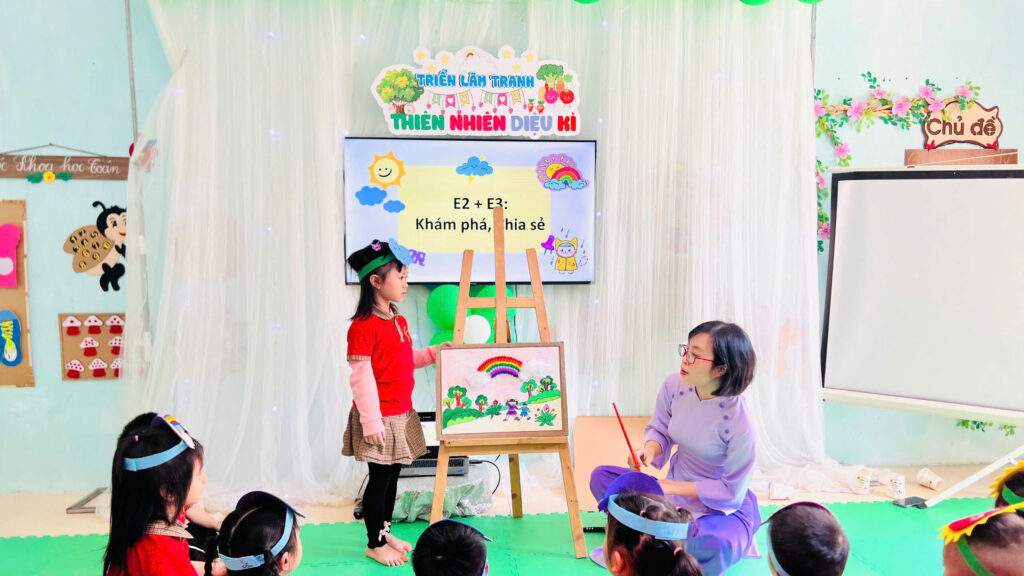 Tại trường Mầm non Đông Vệ, các cô giáo đã triển khai Giờ học Tạo hình ứng dụng STEAM 5E. Họ không chỉ là người truyền đạt, mà còn là người dẫn dắt, người đặt câu hỏi khơi gợi sự tò mò bẩm sinh của trẻ.