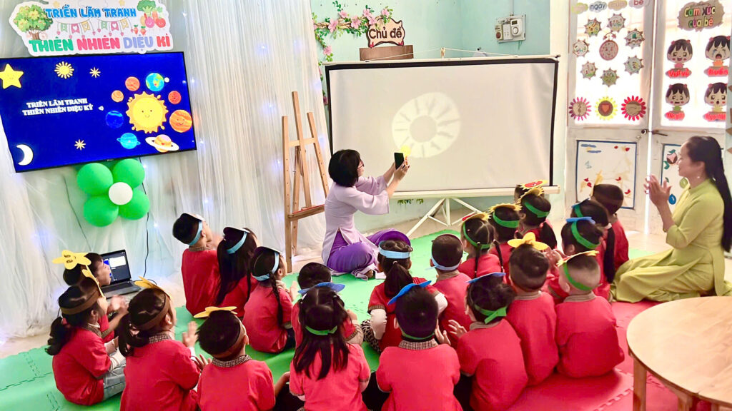 Trường Mầm non Đông Vệ – Đây không chỉ là nơi ươm mầm những mầm non tương lai mà còn là một “vườn ươm sáng tạo” nơi các cô giáo đang mạnh dạn áp dụng phương pháp STEAM theo chu trình 5E vào các tiết dạy.