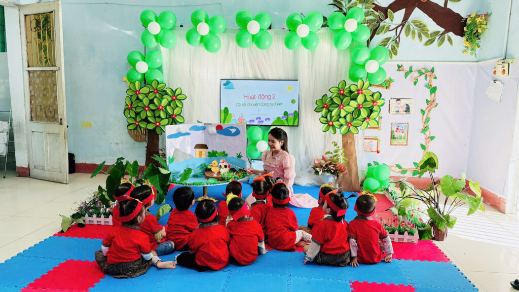 Nhà trường luôn chú trọng xây dựng một môi trường học tập thân thiện, an toàn, giàu tính tương tác. Các lớp học được trang trí sáng tạo, với đầy đủ học liệu, đồ dùng đồ chơi phong phú, phục vụ nhu cầu học tập và vui chơi của trẻ. Các góc hoạt động, khu trải nghiệm ngoài trời được thiết kế khoa học, khuyến khích trẻ khám phá thế giới xung quanh một cách tự nhiên.